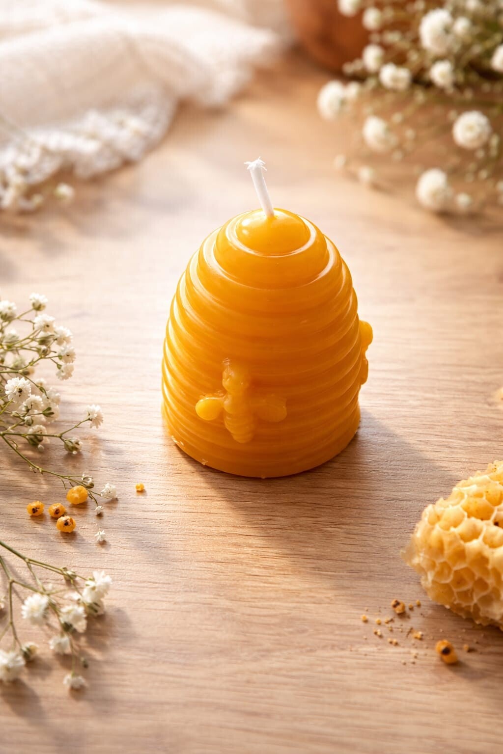 Unsere Kerzen aus 100 % reinem, eigenem Bienenwachs stehen für natürliche Qualität und liebevolle Handarbeit. Mit ihrem warmen, goldenen Schimmer und dem dezent honigartigen Duft schaffen sie eine besonders gemütliche Atmosphäre.