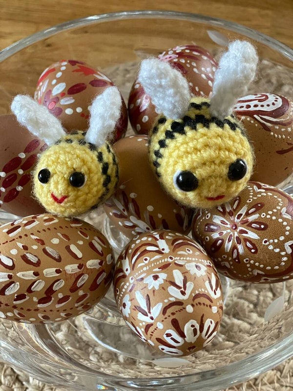 In heimischer Handarbeit hergestellte kleine Bienen in zwei Größen.